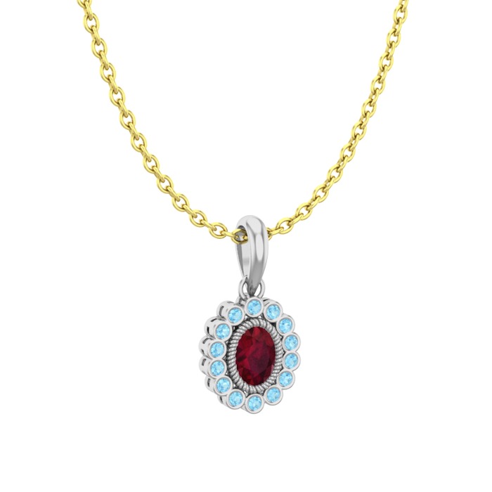 Kök yakut ve akuamarin 18 ayar beyaz altın kolye (40 cm altın rolo zincir)