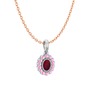 Kök yakut ve pembe kuvars 14 ayar beyaz altın kolye (40 cm rose altın rolo zincir)