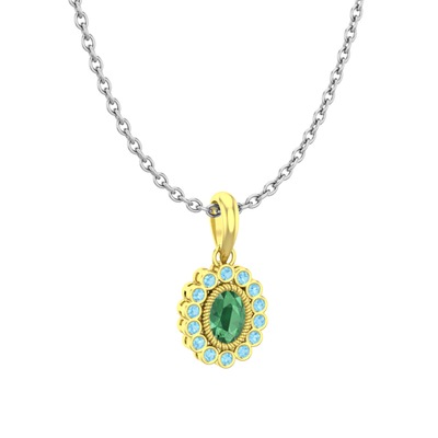 Kök zümrüt ve akuamarin 14 ayar altın kolye (40 cm beyaz altın rolo zincir)