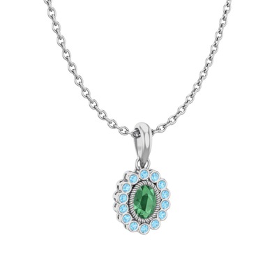 Kök zümrüt ve akuamarin 18 ayar beyaz altın kolye (40 cm beyaz altın rolo zincir)