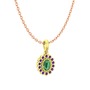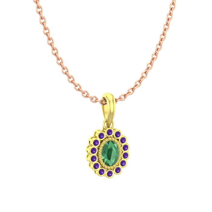 Kök zümrüt ve ametist 18 ayar altın kolye (40 cm gümüş rolo zincir)