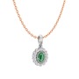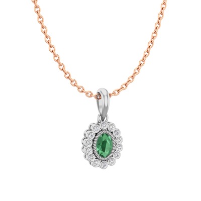 Kök zümrüt ve beyaz zirkon 14 ayar beyaz altın kolye (40 cm rose altın rolo zincir)