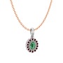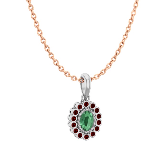 Kök zümrüt ve garnet 8 ayar beyaz altın kolye (40 cm rose altın rolo zincir)