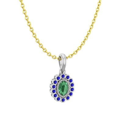 Kök zümrüt ve lab safir 14 ayar beyaz altın kolye (40 cm altın rolo zincir)