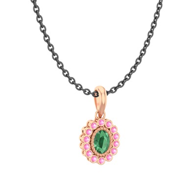 Kök zümrüt ve pembe kuvars 18 ayar rose altın kolye (40 cm gümüş rolo zincir)