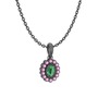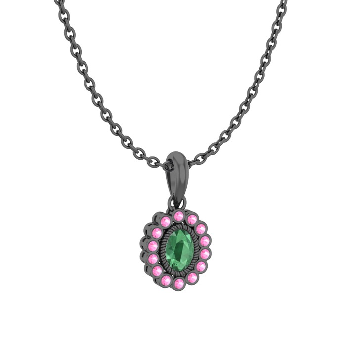 Kök zümrüt ve pembe kuvars 925 ayar siyah rodyum kaplama gümüş kolye (40 cm gümüş rolo zincir)