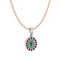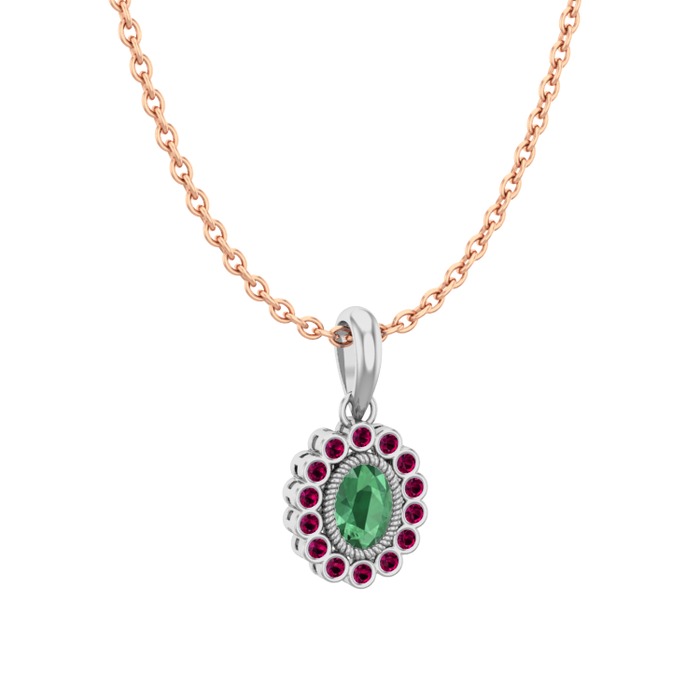 Kök zümrüt ve rodolit garnet 14 ayar beyaz altın kolye (40 cm rose altın rolo zincir)