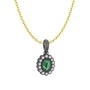 Kök zümrüt ve swarovski 925 ayar siyah rodyum kaplama gümüş kolye (40 cm altın rolo zincir)