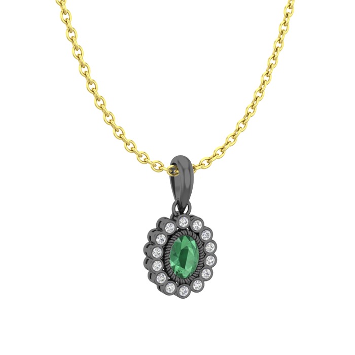 Kök zümrüt ve swarovski 925 ayar siyah rodyum kaplama gümüş kolye (40 cm altın rolo zincir)