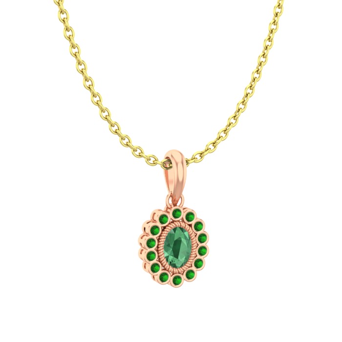 Kök zümrüt ve yeşil kuvars 925 ayar rose altın kaplama gümüş kolye (40 cm altın rolo zincir)