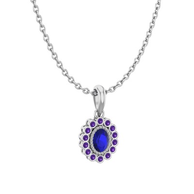 Lab safir ve ametist 925 ayar gümüş kolye (40 cm beyaz altın rolo zincir)