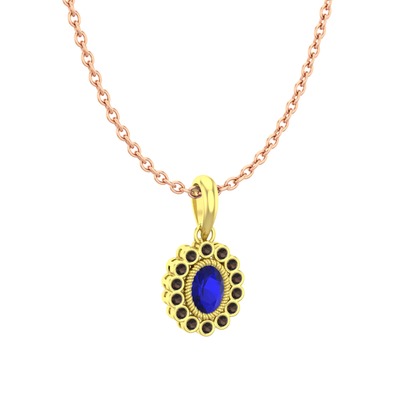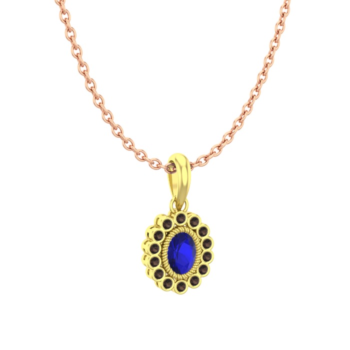 Lab safir ve dumanlı kuvars 14 ayar altın kolye (40 cm rose altın rolo zincir)