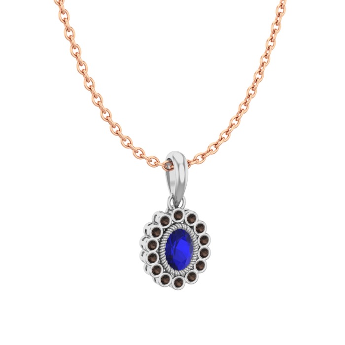 Lab safir ve dumanlı kuvars 8 ayar beyaz altın kolye (40 cm rose altın rolo zincir)