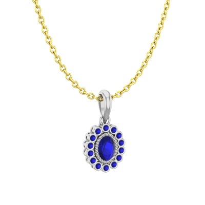 Lab safir 925 ayar gümüş kolye (40 cm gümüş rolo zincir)