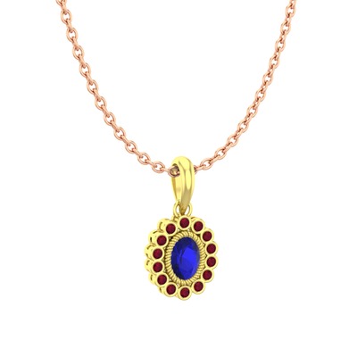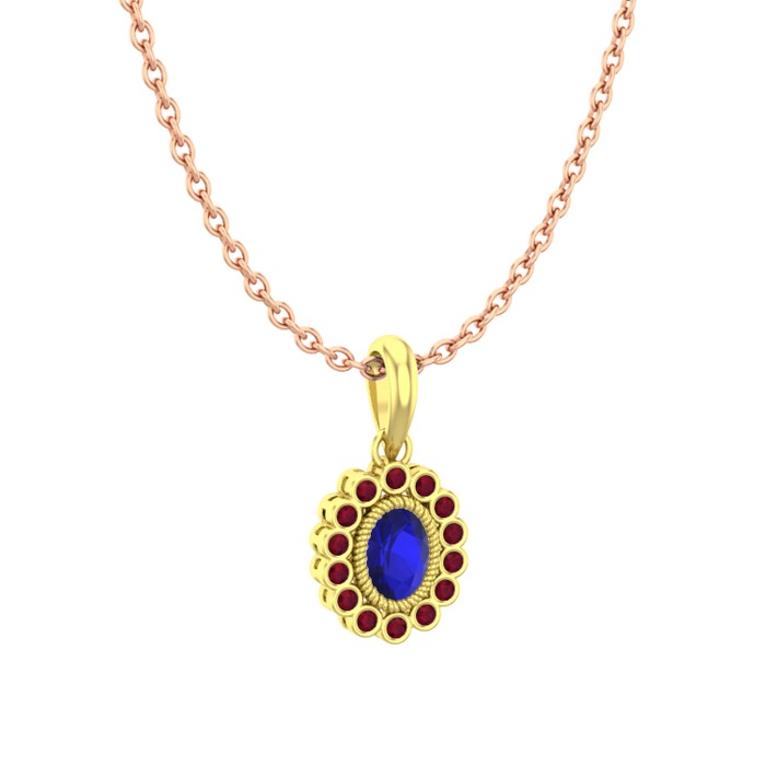 Lab safir ve kök yakut 14 ayar altın kolye (40 cm rose altın rolo zincir)