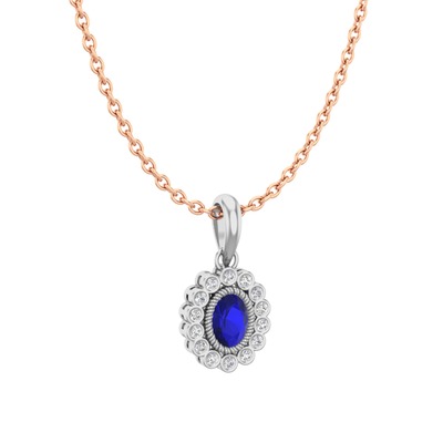 Lab safir ve pırlanta 14 ayar beyaz altın kolye (0.154 karat, 40 cm rose altın rolo zincir)