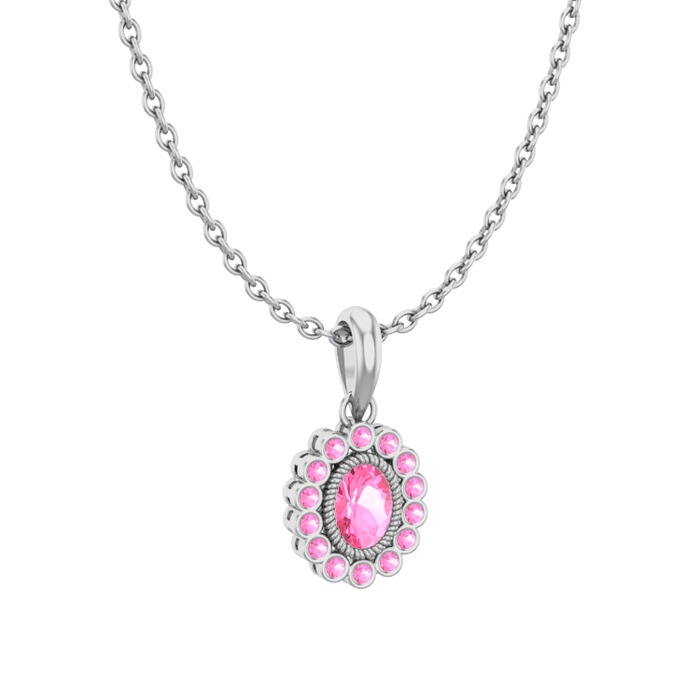 Pembe kuvars 8 ayar beyaz altın kolye (40 cm beyaz altın rolo zincir)
