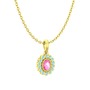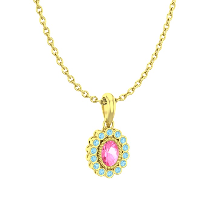 Pembe kuvars ve akuamarin 8 ayar altın kolye (40 cm gümüş rolo zincir)