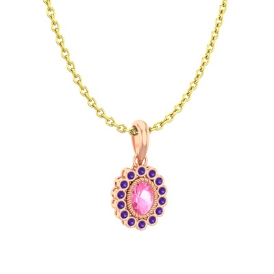 Pembe kuvars ve ametist 925 ayar rose altın kaplama gümüş kolye (40 cm altın rolo zincir)