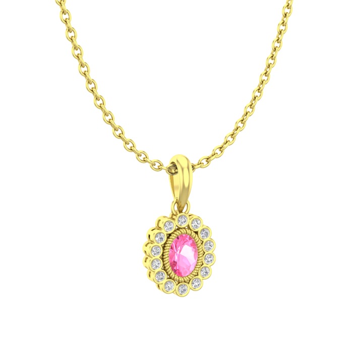Pembe kuvars ve beyaz zirkon 8 ayar altın kolye (40 cm altın rolo zincir)