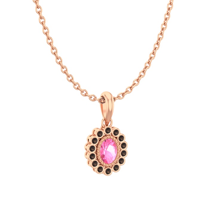 Pembe kuvars ve dumanlı kuvars 14 ayar rose altın kolye (40 cm rose altın rolo zincir)