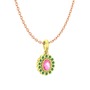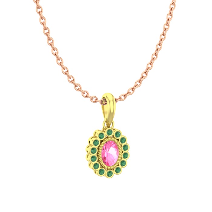 Pembe kuvars ve kök zümrüt 14 ayar altın kolye (40 cm rose altın rolo zincir)