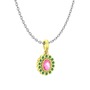 Pembe kuvars ve kök zümrüt 925 ayar altın kaplama gümüş kolye (40 cm gümüş rolo zincir)