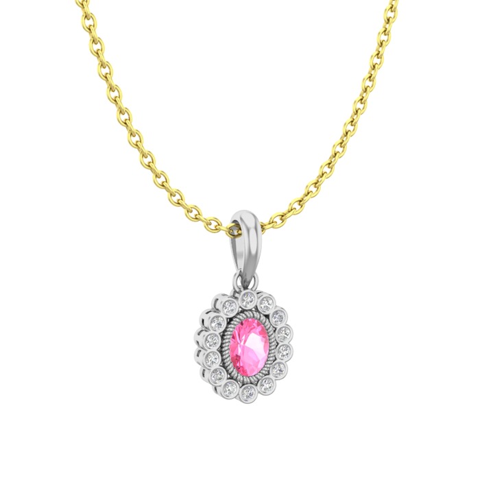 Pembe kuvars ve pırlanta 18 ayar beyaz altın kolye (0.154 karat, 40 cm altın rolo zincir)