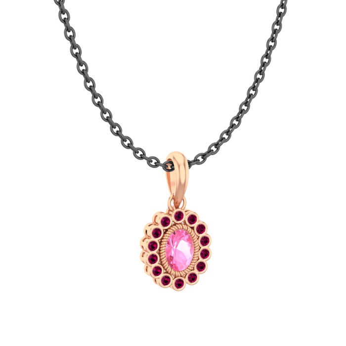 Pembe kuvars ve rodolit garnet 925 ayar rose altın kaplama gümüş kolye (40 cm gümüş rolo zincir)