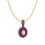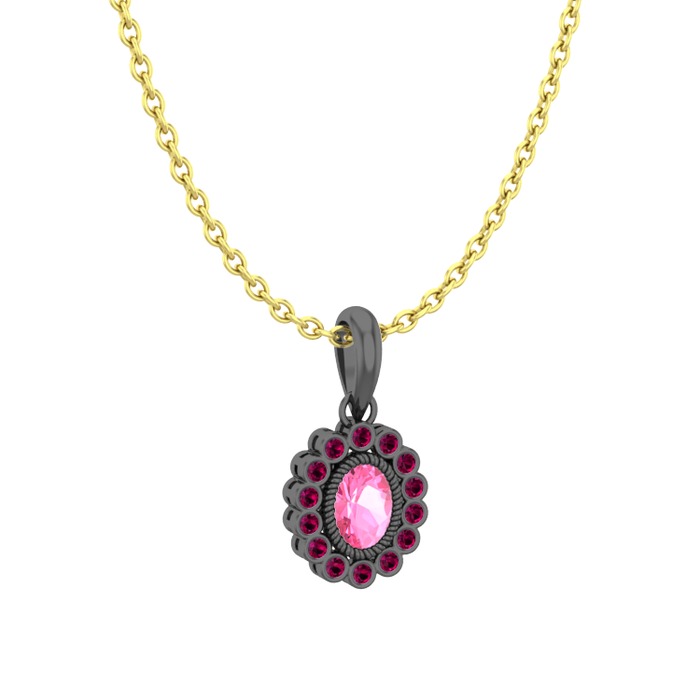 Pembe kuvars ve rodolit garnet 925 ayar siyah rodyum kaplama gümüş kolye (40 cm altın rolo zincir)