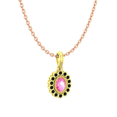 Pembe kuvars ve siyah zirkon 925 ayar altın kaplama gümüş kolye (40 cm gümüş rolo zincir)