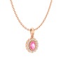 Pembe kuvars ve swarovski 8 ayar rose altın kolye (40 cm rose altın rolo zincir)