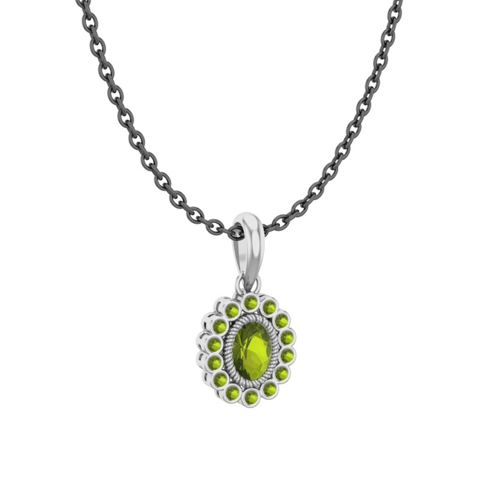 Peridot 18 ayar beyaz altın kolye (40 cm gümüş rolo zincir)