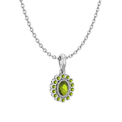Peridot 8 ayar beyaz altın kolye (40 cm beyaz altın rolo zincir)
