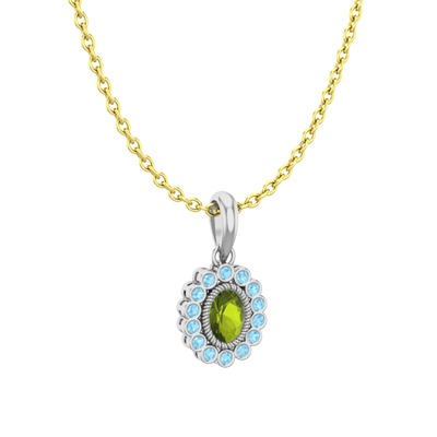 Peridot ve akuamarin 18 ayar beyaz altın kolye (40 cm altın rolo zincir)