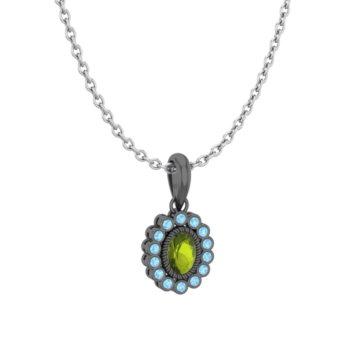 Peridot ve akuamarin 925 ayar siyah rodyum kaplama gümüş kolye (40 cm beyaz altın rolo zincir)