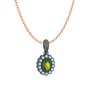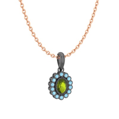 Peridot ve akuamarin 925 ayar siyah rodyum kaplama gümüş kolye (40 cm rose altın rolo zincir)