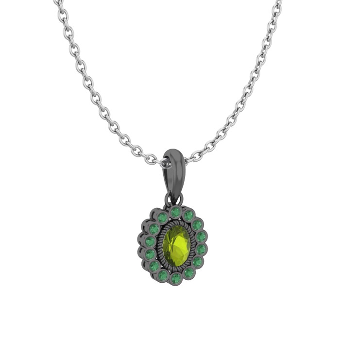 Peridot ve kök zümrüt 925 ayar siyah rodyum kaplama gümüş kolye (40 cm gümüş rolo zincir)