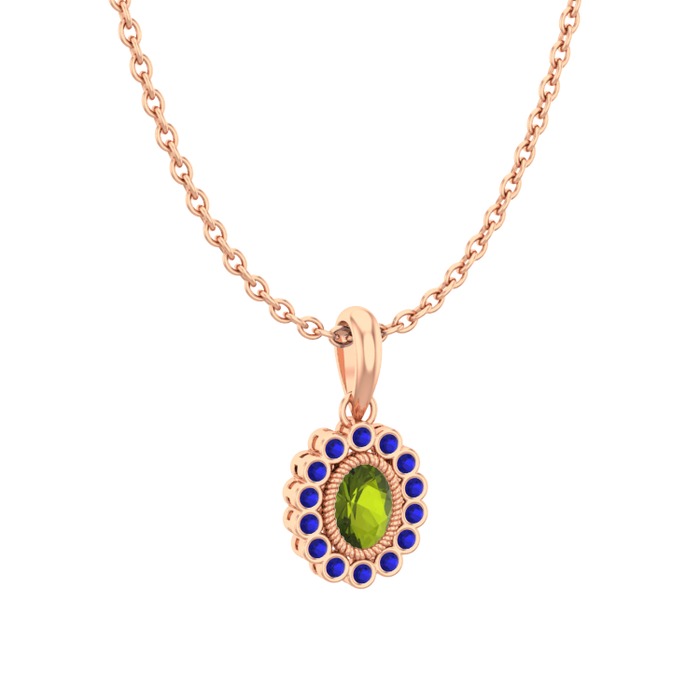 Peridot ve lab safir 925 ayar rose altın kaplama gümüş kolye (40 cm rose altın rolo zincir)
