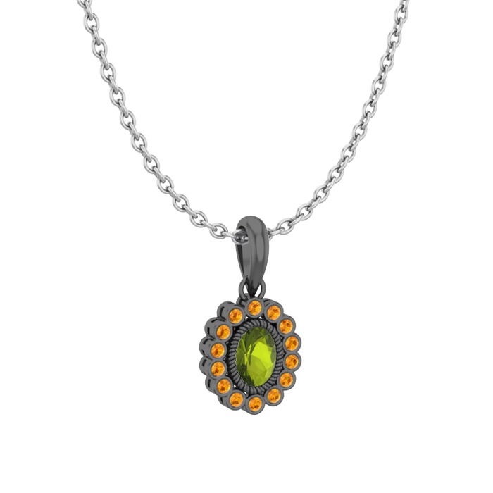 Peridot ve sitrin 925 ayar siyah rodyum kaplama gümüş kolye (40 cm gümüş rolo zincir)