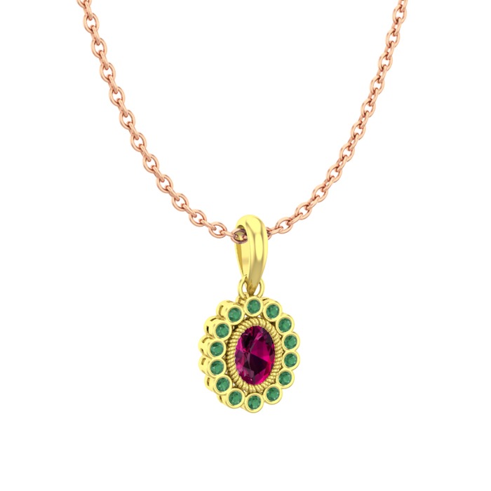 Rodolit garnet ve kök zümrüt 18 ayar altın kolye (40 cm rose altın rolo zincir)