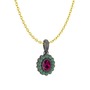 Rodolit garnet ve kök zümrüt 925 ayar siyah rodyum kaplama gümüş kolye (40 cm altın rolo zincir)