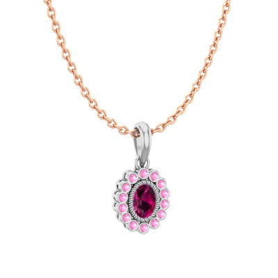 Rodolit garnet ve pembe kuvars 8 ayar beyaz altın kolye (40 cm rose altın rolo zincir)