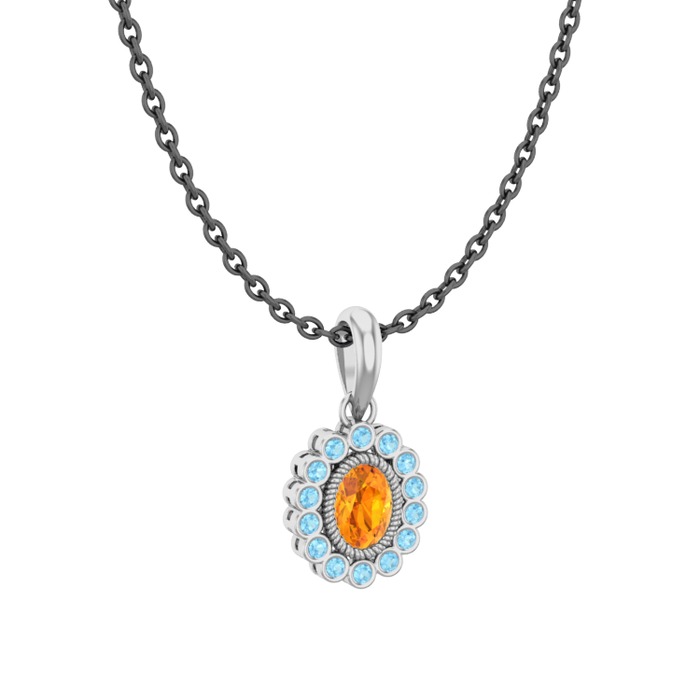 Sitrin ve akuamarin 14 ayar beyaz altın kolye (40 cm gümüş rolo zincir)
