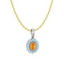 Sitrin ve akuamarin 8 ayar beyaz altın kolye (40 cm gümüş rolo zincir)