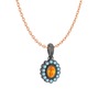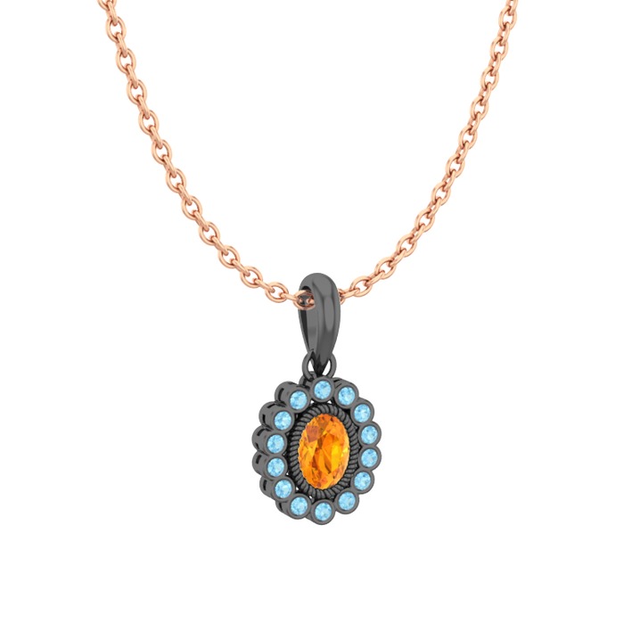 Sitrin ve akuamarin 925 ayar siyah rodyum kaplama gümüş kolye (40 cm rose altın rolo zincir)