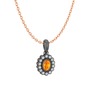 Sitrin ve beyaz zirkon 925 ayar siyah rodyum kaplama gümüş kolye (40 cm rose altın rolo zincir)