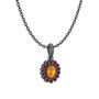 Sitrin ve kök yakut 925 ayar siyah rodyum kaplama gümüş kolye (40 cm gümüş rolo zincir)