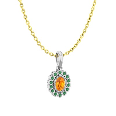 Sitrin ve kök zümrüt 925 ayar gümüş kolye (40 cm altın rolo zincir)
