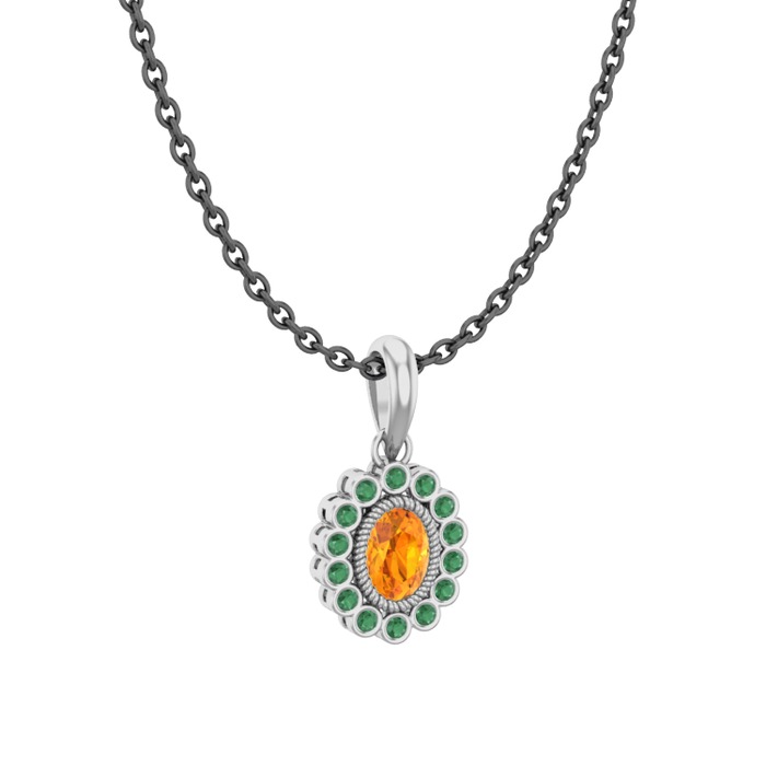 Sitrin ve kök zümrüt 925 ayar gümüş kolye (40 cm gümüş rolo zincir)